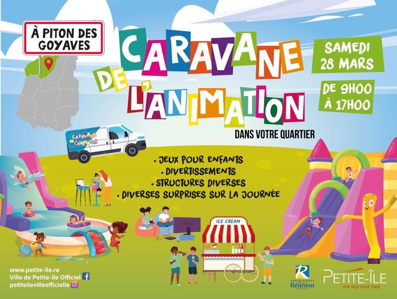 - Sources et plus d'informations : ville de Petite-Île - le programme de la caravane de l'animation est publié notamment sur le site de la ville. Pour info, la caravane de l'animation change régulièrement de quartier : centre ville de Petite-ïle, Manapany les Bas, Chiendent Bambou, etc