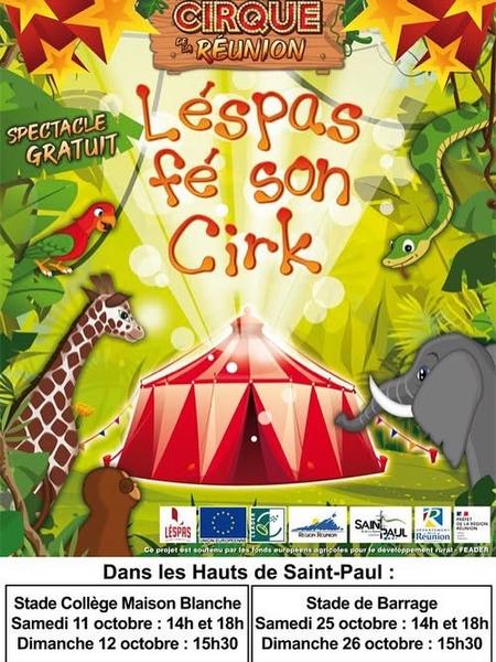 Le Cirque de La Réunion organise régulièrement des ateliers et événements dans diverses communes comme par exemple le spectacle" La Boîte aux Rêves", "Lespas fé son cirk", ...