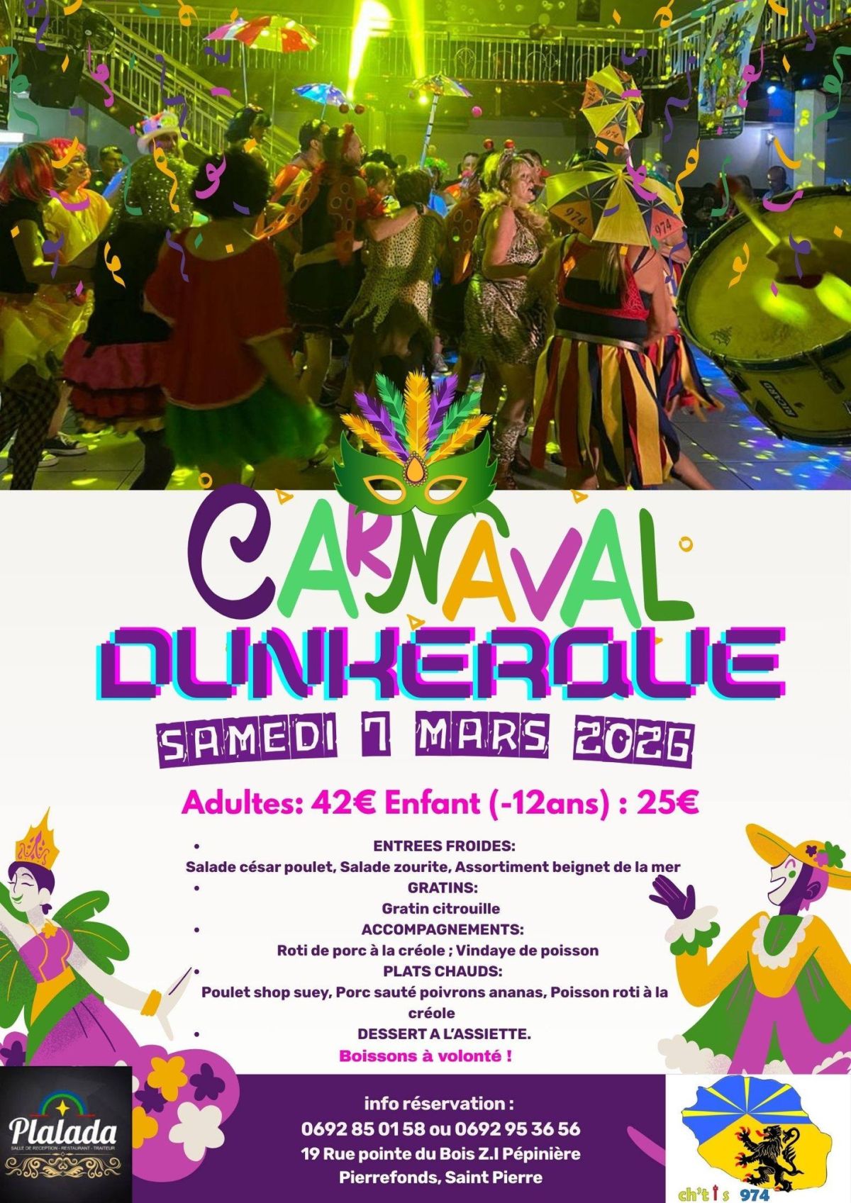 L’ambiance du célèbre Carnaval de Dunkerque débarque à Saint-Pierre pour une soirée haute en couleur, entre musique, fête et traditions carnavalesques.