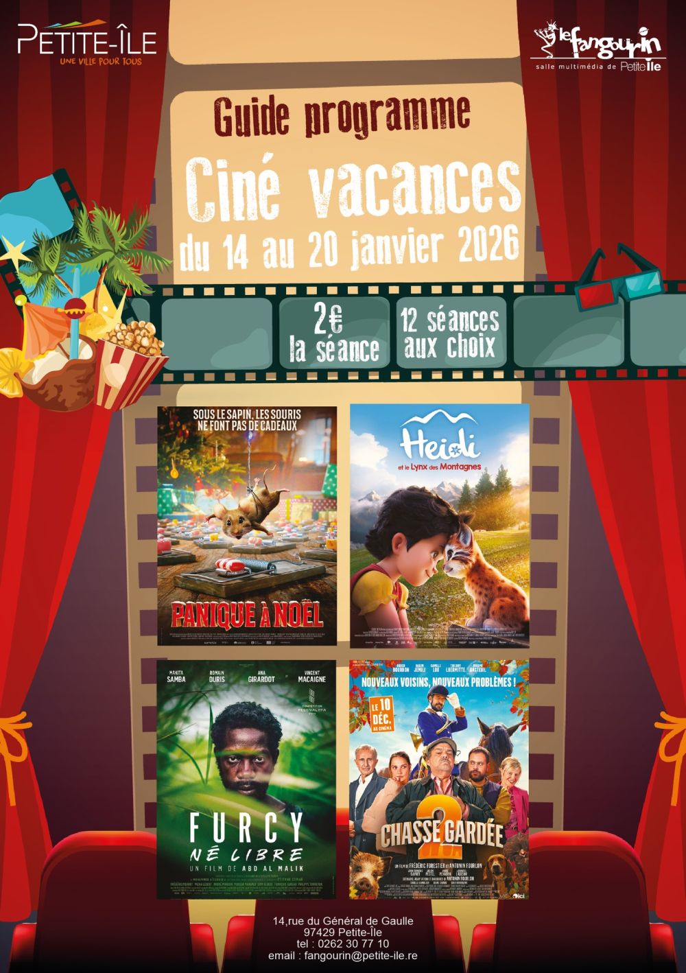Du 14 au 20 janvier, c'est Ciné vacances à Petite-Île ! La salle Le Fangourin vous propose des séances à 2€.