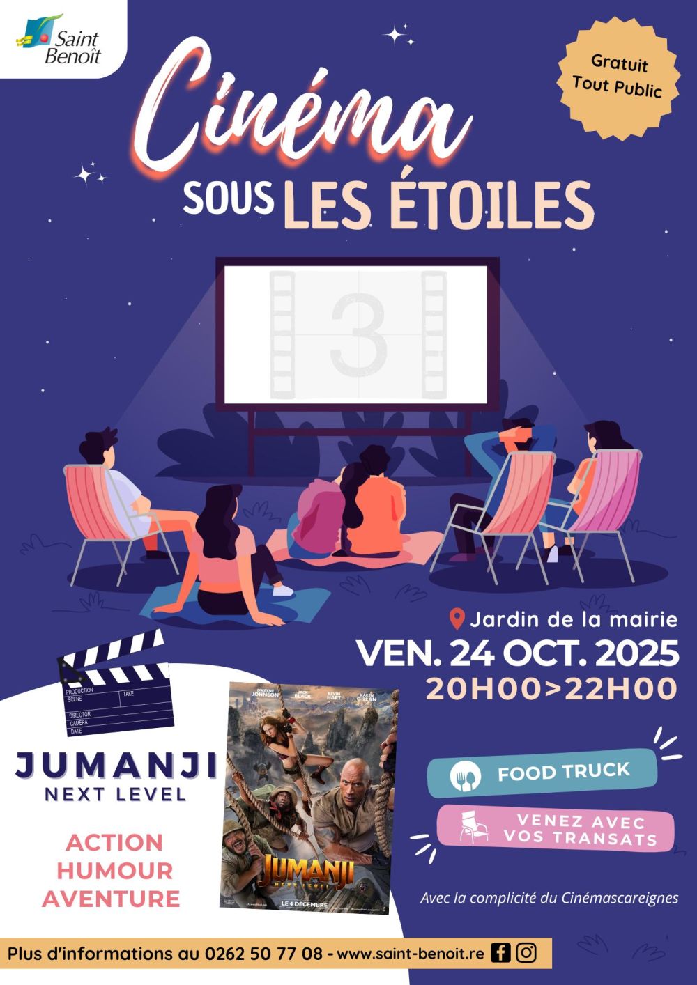 Une soirée conviviale et gratuite vous attend sous les étoiles à Saint-Benoît avec la projection du film Jumanji : Next Level. Installez-vous confortablement dans le Jardin de la mairie avec vos transats ou couvertures pour une aventure familiale mêlant action, humour et fantaisie. Un food truck sera également sur place pour vos petites faims.
