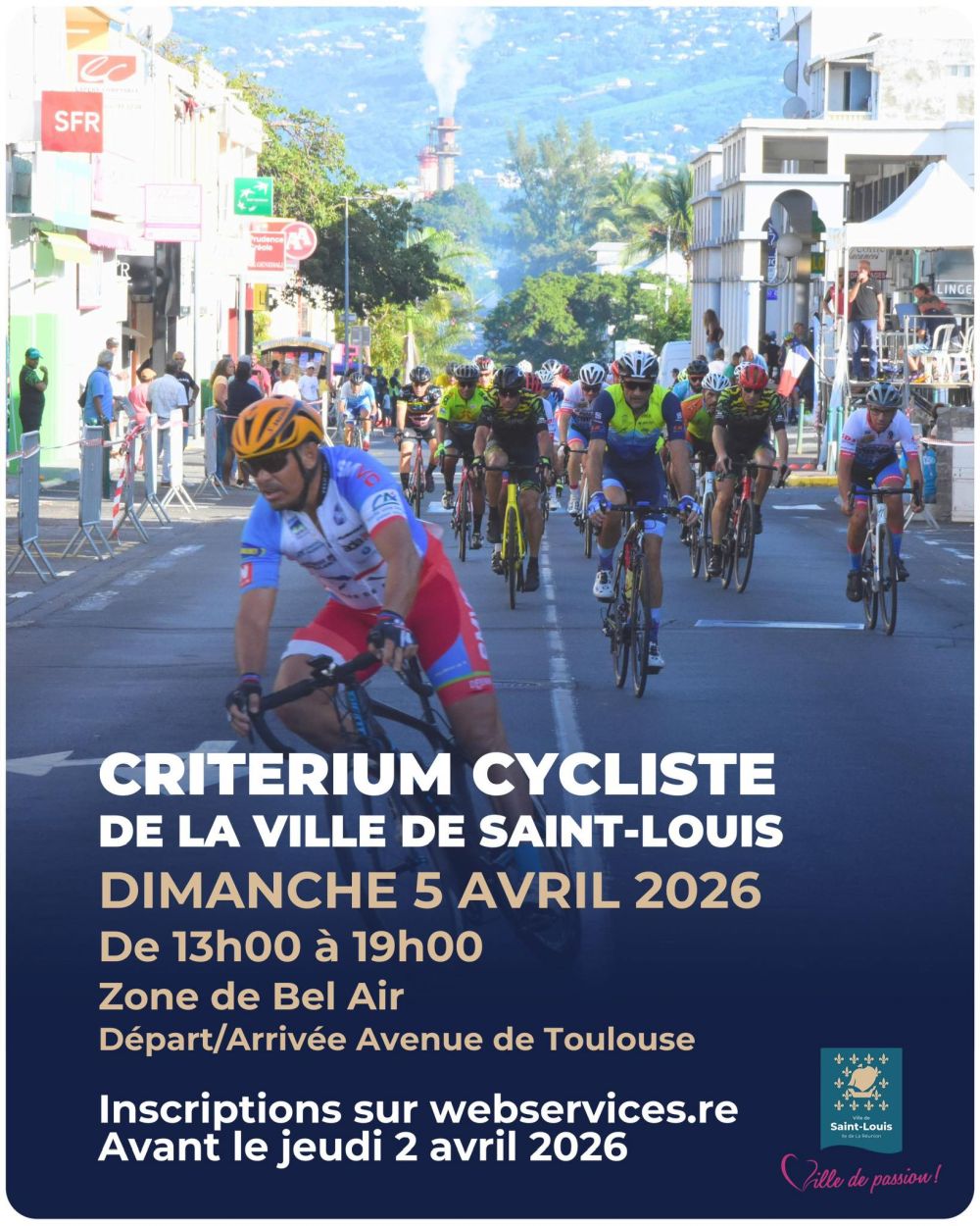 Le critérium cycliste de la Ville de Saint-Louis propose une course sur route avec plusieurs épreuves réparties par catégories d’âge et de niveau. Plus de 200 participants sont attendus pour cette journée sportive.