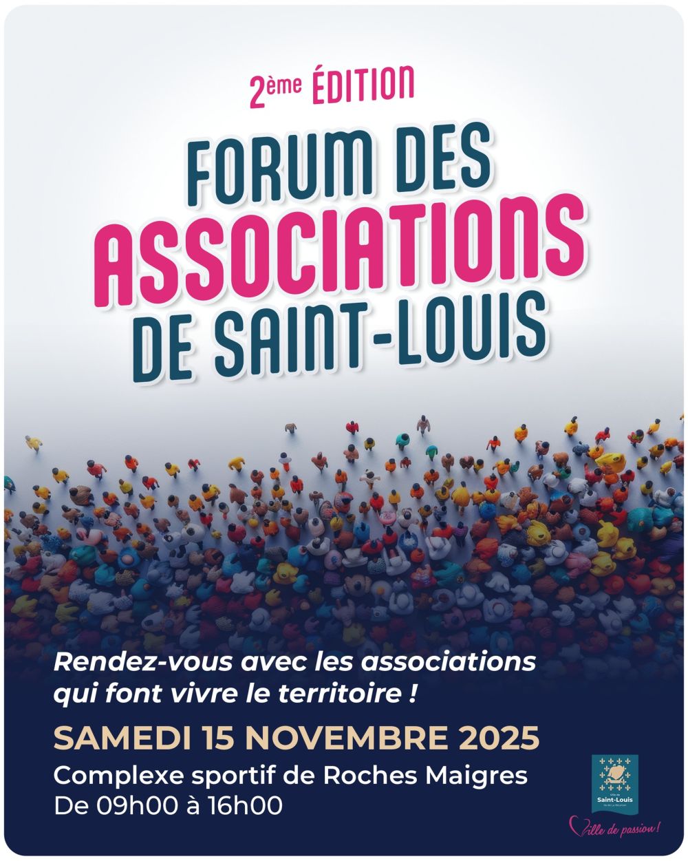 La Ville de Saint-Louis organise la seconde édition du forum des associations. Un rendez-vous convivial et animé pour valoriser la richesse du tissu associatif local. Les familles pourront découvrir de nouvelles activités, rencontrer les bénévoles et profiter d’animations artistiques, ludiques et musicales.