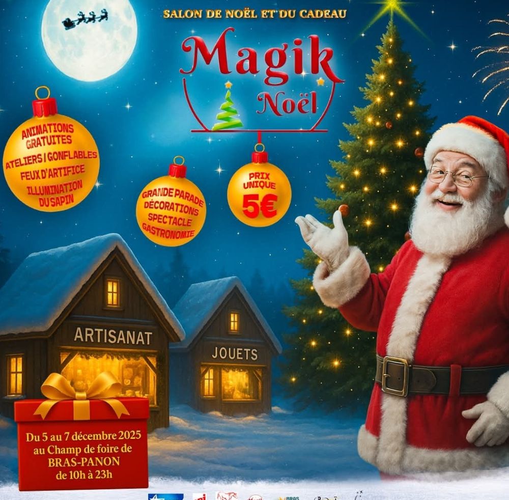 Le Salon Magik Noël s’installe au champ de foire de Bras-Panon du 5 au 7 décembre 2025, de 10h à 23h, avec une nocturne jusqu’à minuit le samedi. Ce rendez-vous convivial mêle idées cadeaux, animations, spectacles et ambiance féérique pour toute la famille.