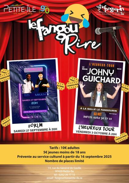 - Billetterie : prévente au service culturel à partir du 16 septembre 2025 (nombre de places limité) - 0262 30 77 10 – fangourin@petite-ile.re