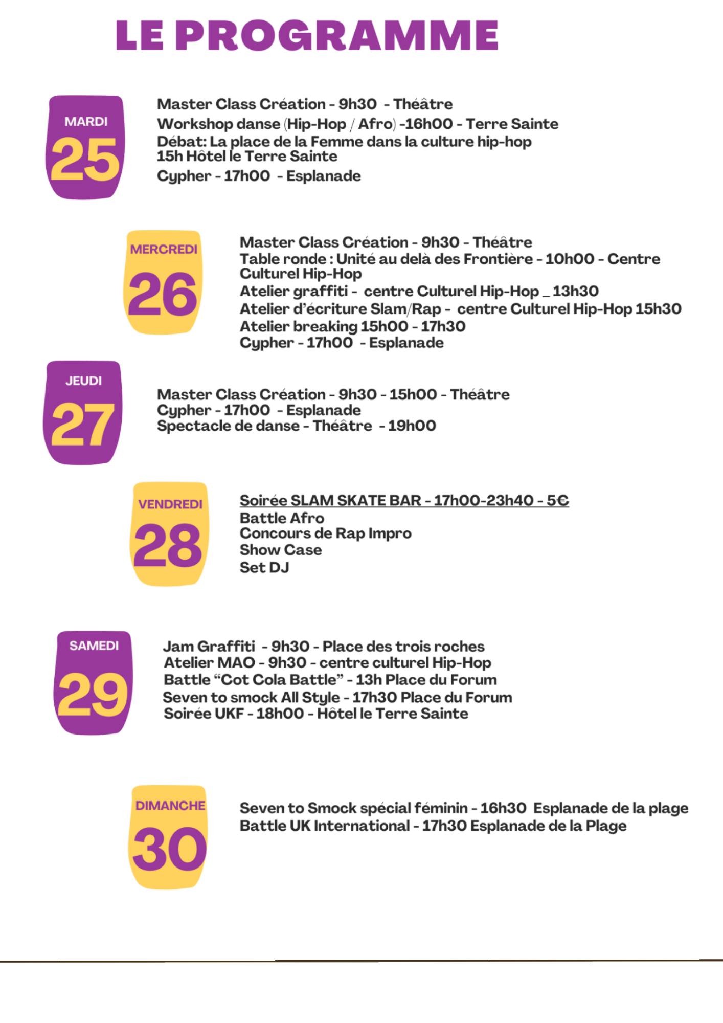 - Tarif : gratuit sauf soirée Slam (5 €)