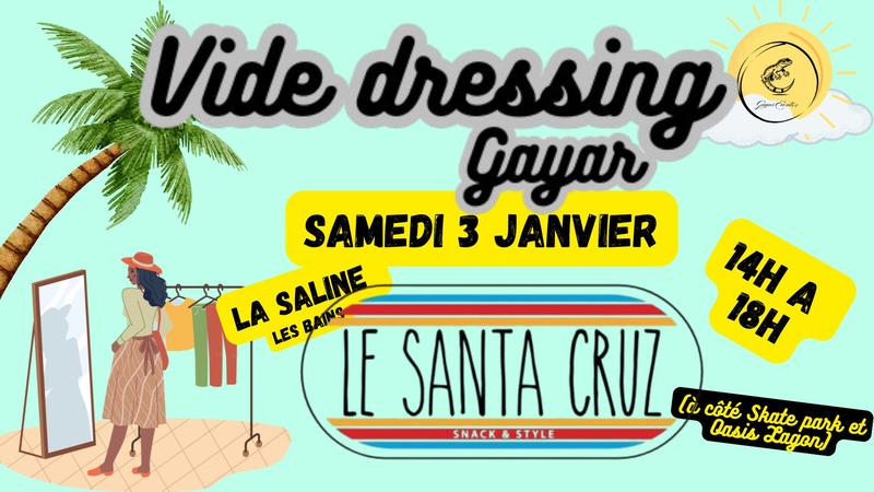- Plus d’infos / sources : voir l'affiche Vide Dressing Gayar. Le vide dressing gayar a déjà eu lieu dans différentes communes ou quartiers comme à Saint-Denis, Saint-Leu, aux Avirons, à La Saline, à l'Etang-Salé, ...