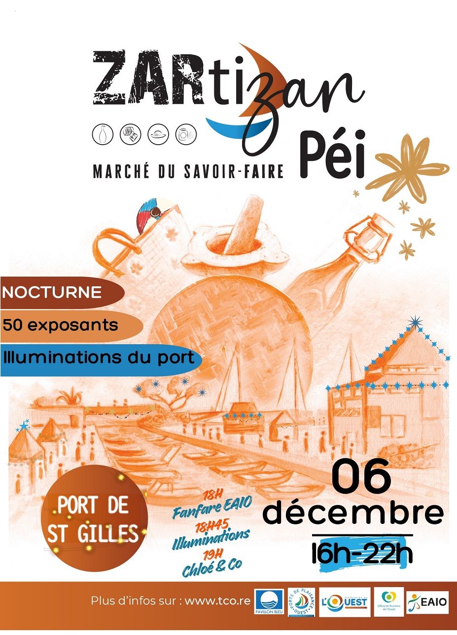 Le port de plaisance de Saint-Gilles les Bains accueille le samedi 6 décembre une cinquantaine d’exposants pour une nouvelle édition de Zartizan Péi. Artisans et créateurs péï proposeront créations originales, gourmandises et objets uniques pour préparer vos fêtes tout en soutenant l’artisanat local. Une soirée à partager entre amis ou en famille dans une ambiance festive au cœur du port de plaisance illuminé.