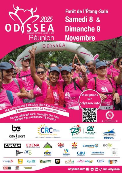 A La Réunion, la manifestation Odysséa a lieu depuis 2008 dans la forêt de l'Etang-Salé. Depuis sa création, Odysséa Réunion a permis de lever plus de 2 millions d'euros pour l'aide aux malades et pour la prévention du cancer du sein sur l'île. "vive la vague rose" !!!